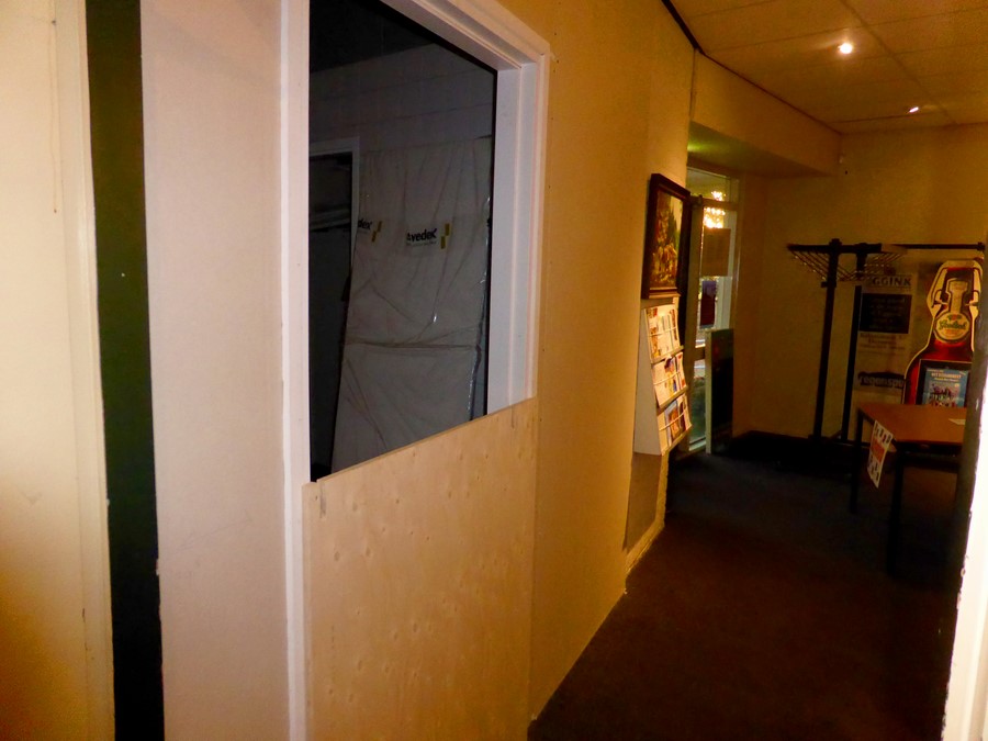 Het einde voor de aannemers is bijna inzicht en dan kunnen de vrijwilligers van De Kuip de hal opknappen en de ruimte naast het toilet inrichten als kleine opslag. Want aan de rechterkant en de achterkant is nog ruimte over voor opslag (zie foto 3). En dat hebben we in De Kuip nooit genoeg.