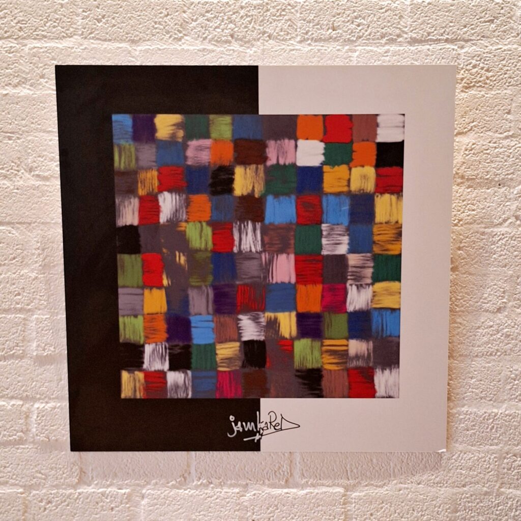 jamkaReD is de artiestennaam van Roel Dikken. Geboren op 7 december 1965 in Hengelo (O). Nederlandse en Indische roots. Tekende altijd al. Deel en publiceer sinds 2014. Inspiratie zet ik om in eigen stijl. Abstract vooral. Soms figuratiever. Ik doe ’t vooral digitaal, op telefoon en tablet. Ook op canvas, papier. Op muren ook, gebouwen, glazen, mokken, koffers, riemen. Onder andere. Mijn helden: Miró, Kandinsky, CoBrA beweging, Picasso, Keith Haring, Basquiat.