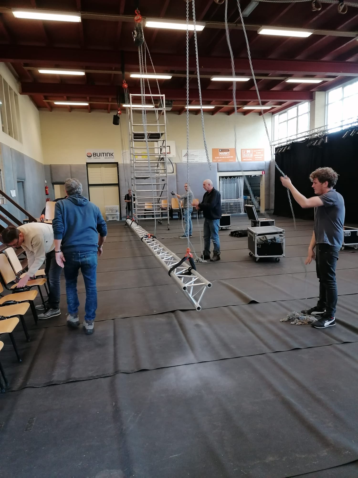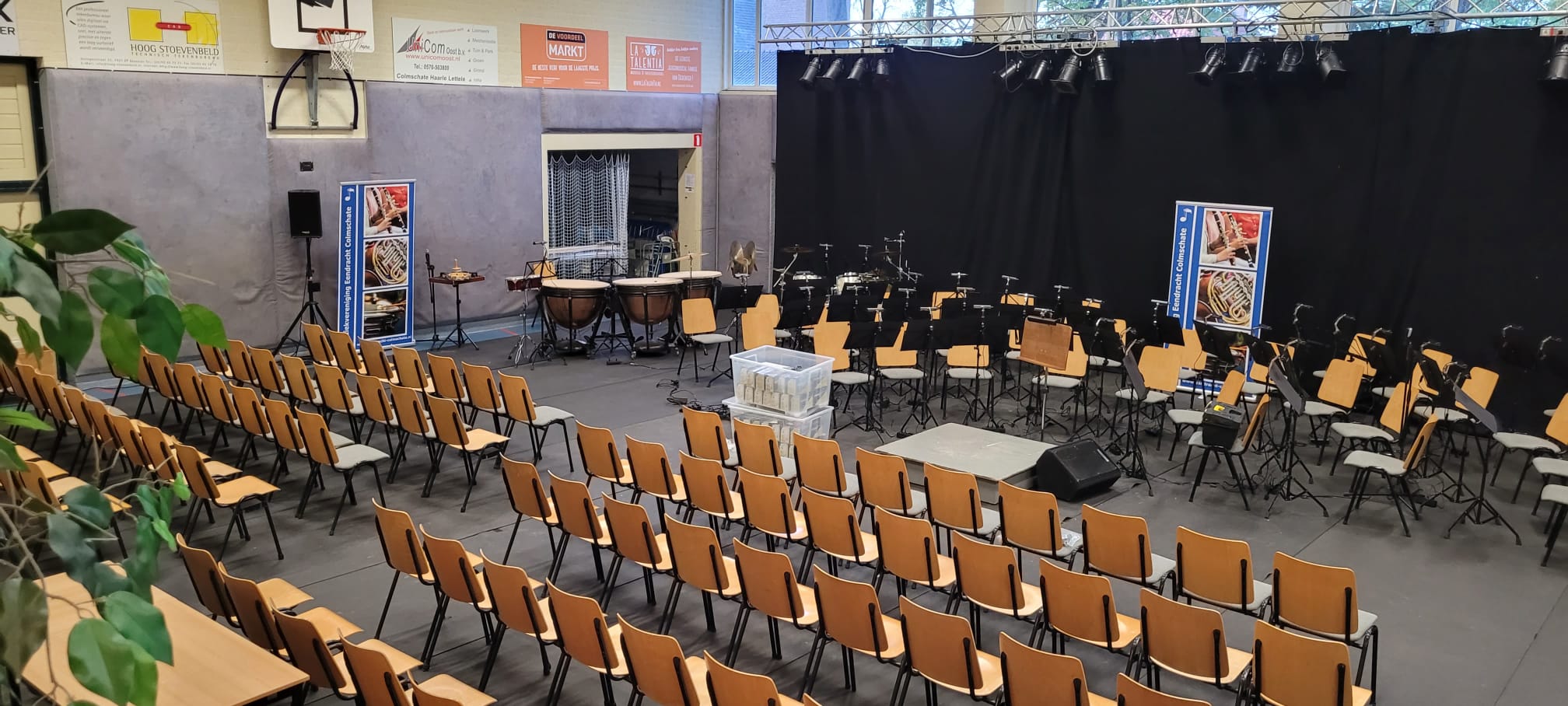 Met vele vrijwilligers is de sporthal weer omgebouwd naar concertzaal en weer terug naar sporthal. Alle vrijwilligers die weer geholpen hebben, bedankt voor de hulp!