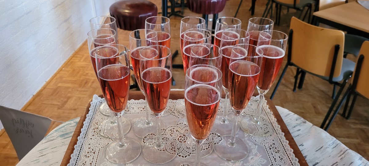 De middag werd geopend met een inloop onder begeleiding van zangeres Laura van Nijendaal, champagne en gebakjes van de Parabool met het jubileumlogo. Fijn om te zien om zoveel mensen weer te zien, helemaal na de twee afgelopen corona jaren. Het was een weerzien van oud beheerders, bestuursleden, huurders, vrijwilligers, obligatiehouders, gebruikers van De Kuip en noem maar op.