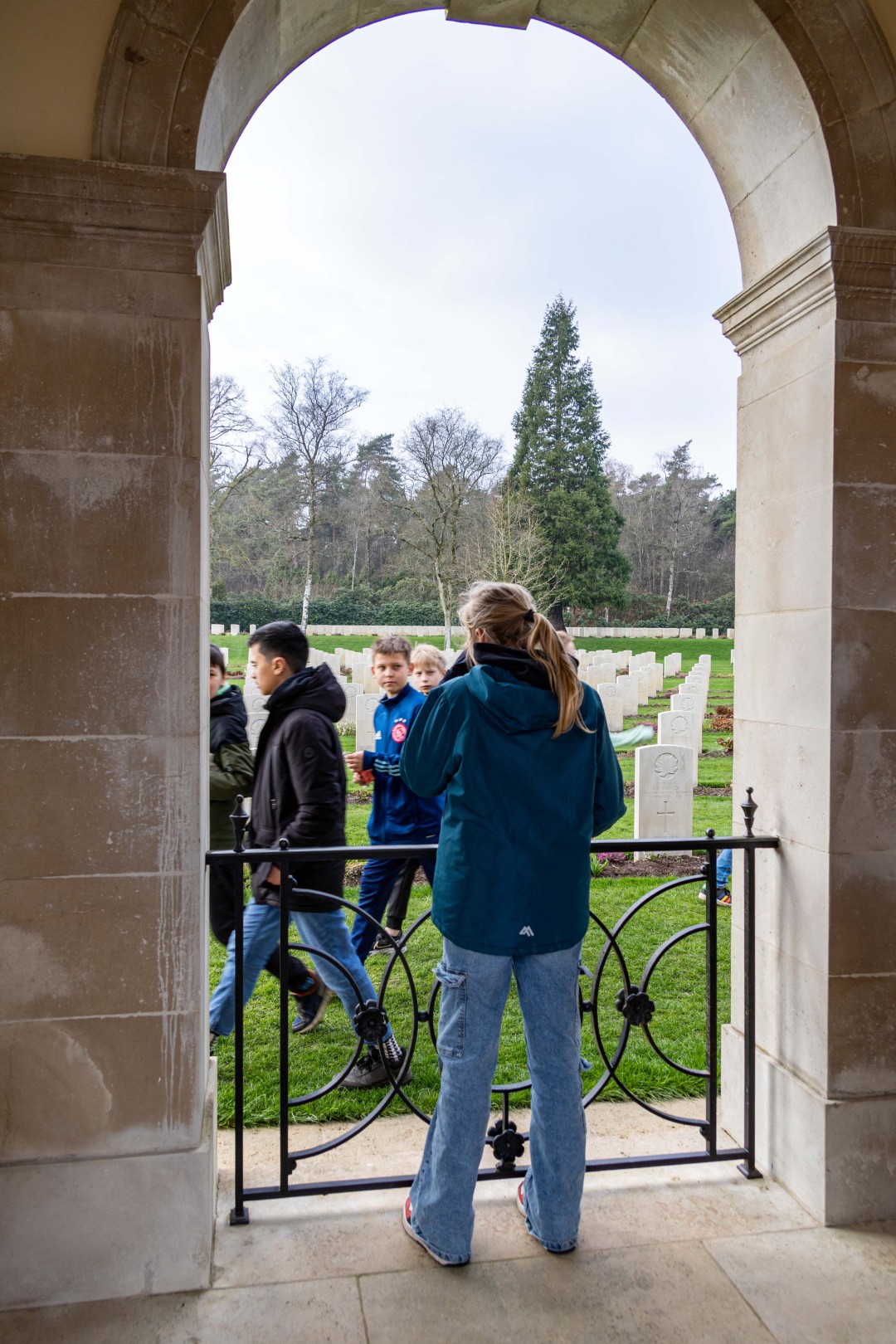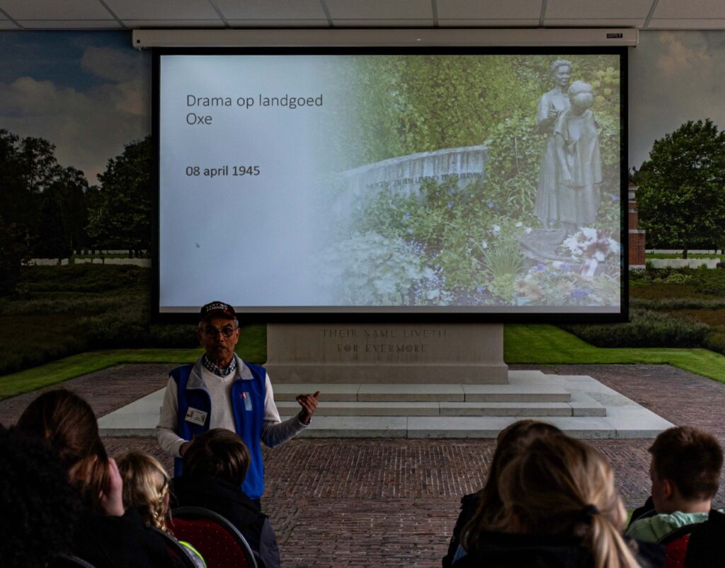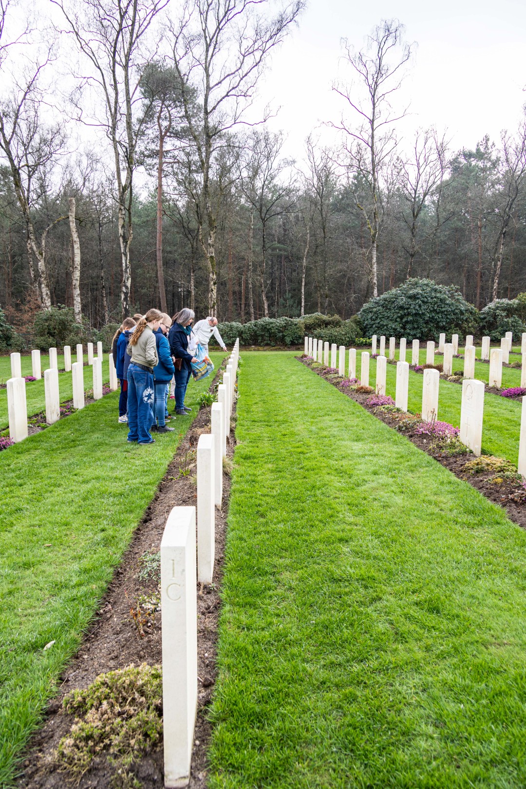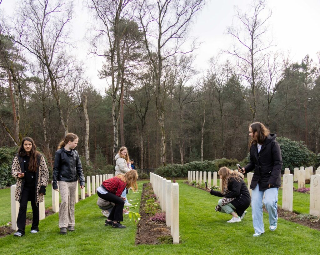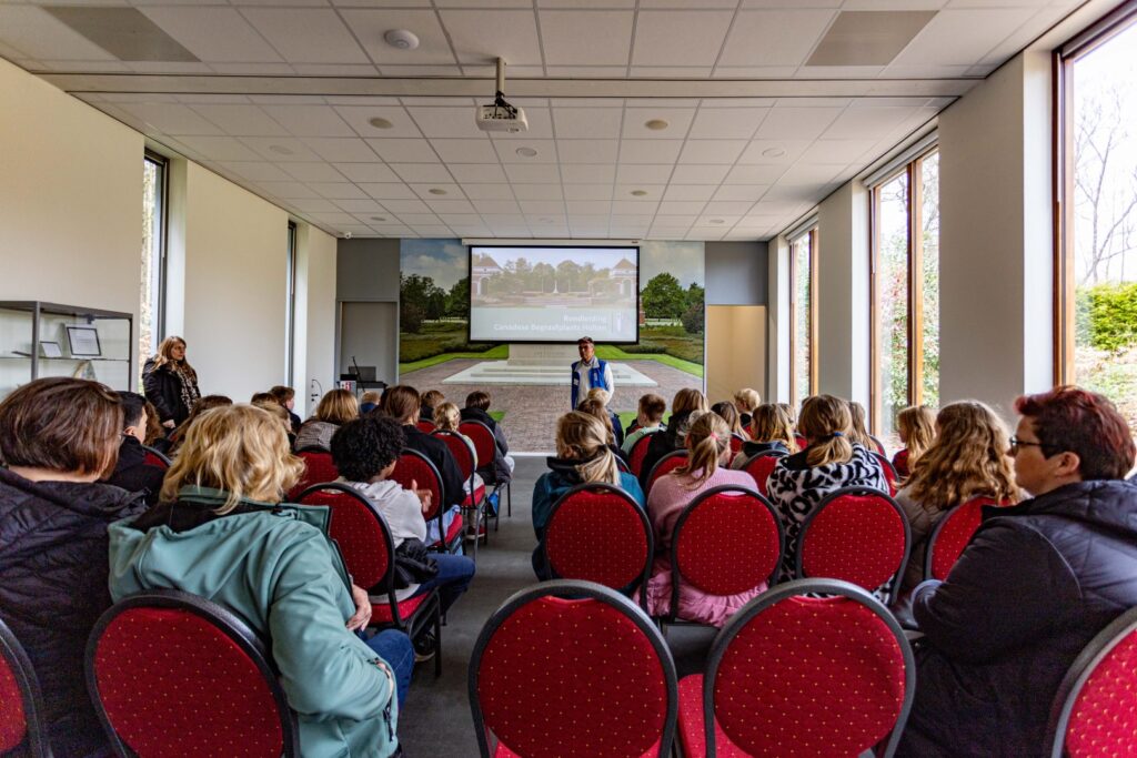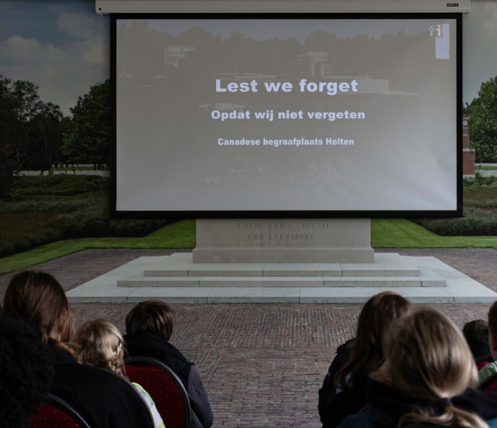 Op dinsdagmiddag 19 maart hebben groep 8 leerlingen van OBS Kolmenscate samen met ouders en vrijwilligers van de werkgroep een bezoek gebracht aan de Canadese Begraafplaats in Holten. Hier liggen de 46 Canadese soldaten die zijn omgekomen bij de bevrijding van Colmschate en haar buurtschappen. Na een introductievideo was er een rondleiding met gidsen over de bergraafplaats.