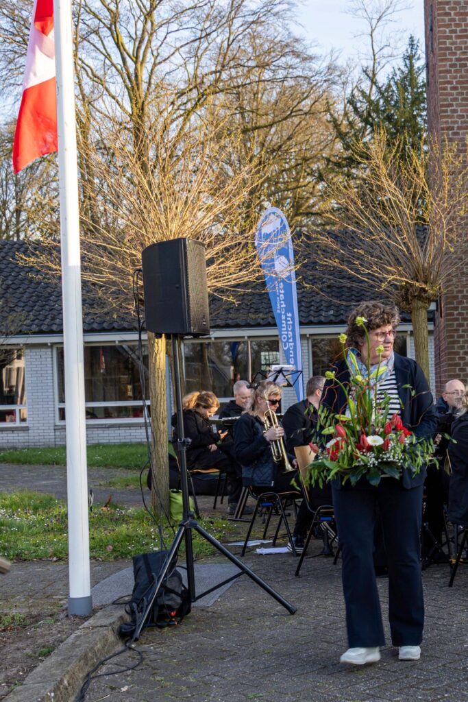 Toos de Hullu – Cellarius deelde een persoonlijk verhaal over haar belevenissen vóór, tijdens en kort na de bevrijding van Colmschate in 1945. Tijdens de oorlog woonde Toos in het pand waar nu het Hof van Colmschate is gevestigd. Leerlingen uit groep 8 – Thijmen, Peppe, Miley, Anne en Femke – droegen twee mooie gedichten voor. Namens de gemeente Deventer hield wethouder en loco-burgemeester Marcel Elferink een korte toespraak.