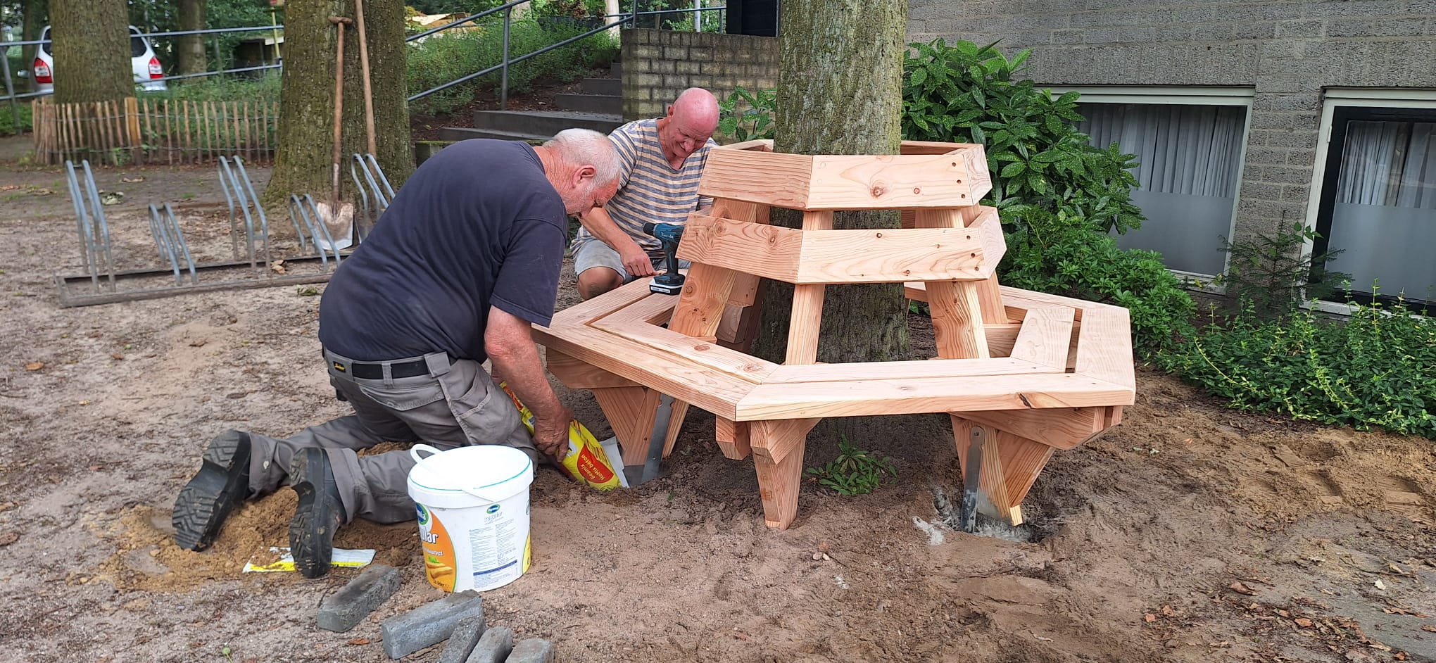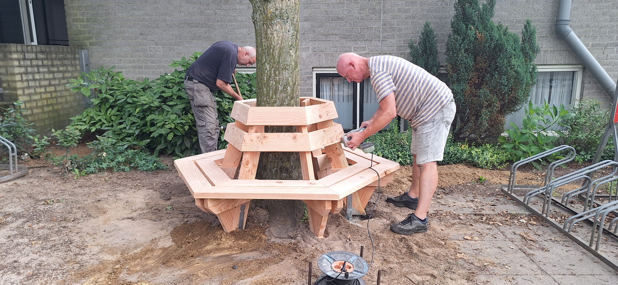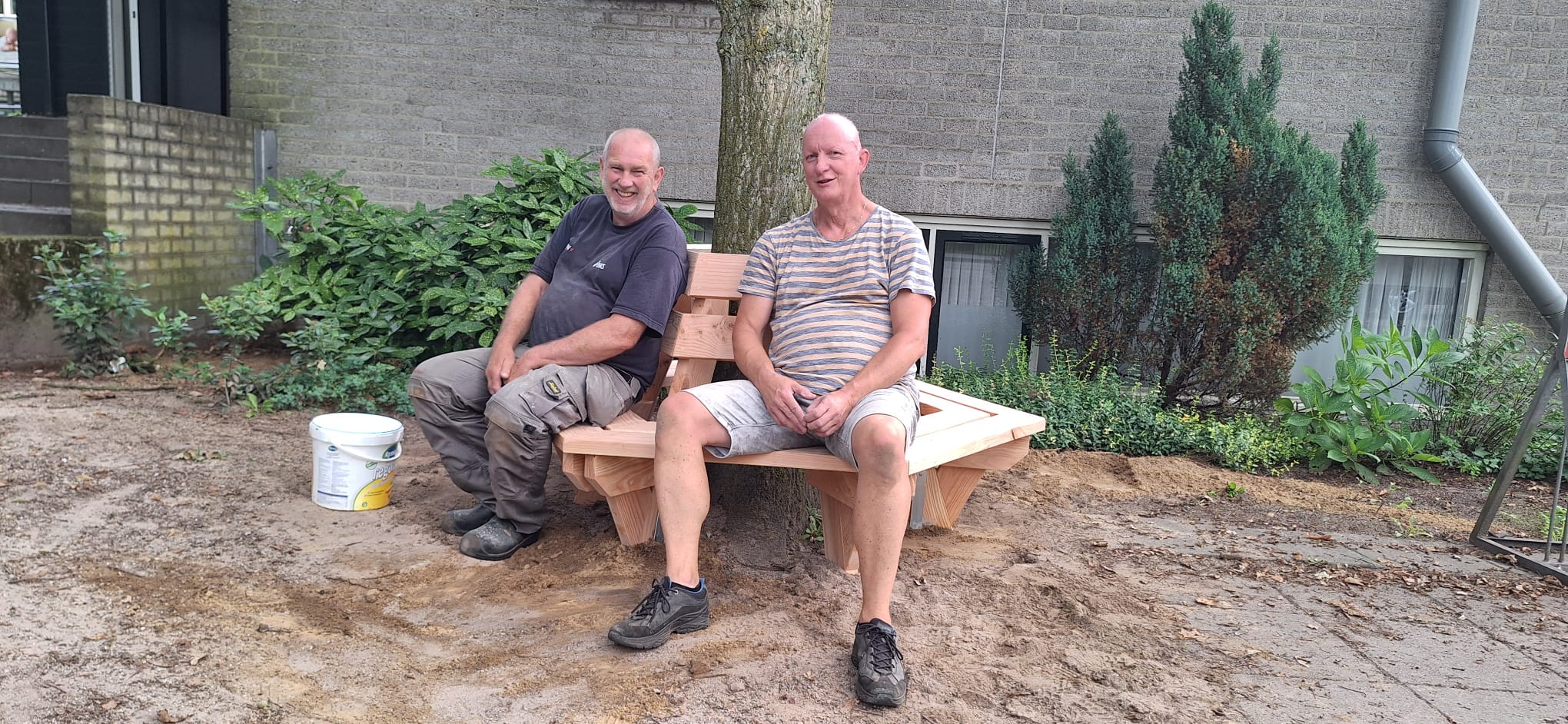 Samen met Gerrit heeft hij deze in augustus geplaatst. We zijn enorm blij met deze mooie nieuwe bank en willen Huub dan ook heel erg bedanken voor het vele werk wat hij hieraan besteed heeft.