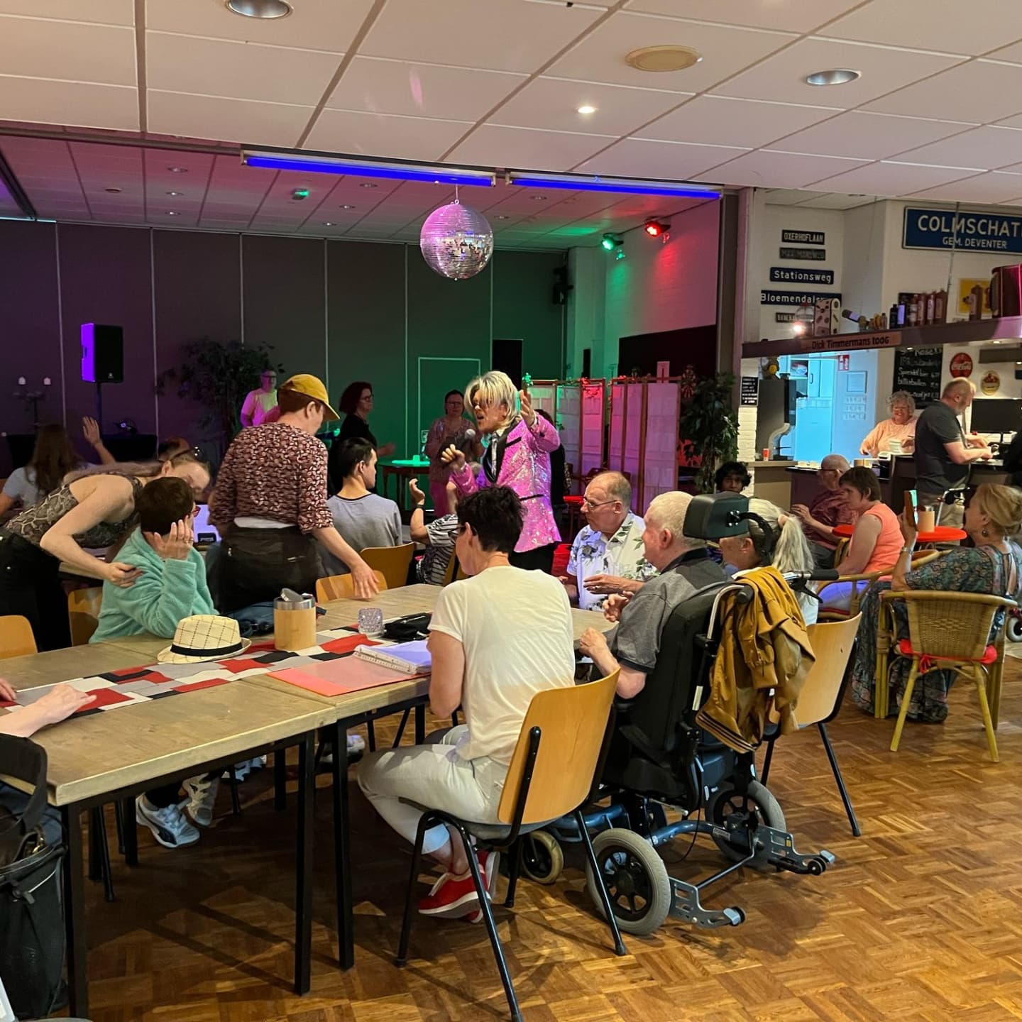 Een enthousiaste groep vrijwilligers zorgt ervoor dat iedereen zich welkom voelt. Zij kennen de deelnemers goed en bieden ondersteuning waar nodig, zodat het voor iedereen een fijne avond wordt.