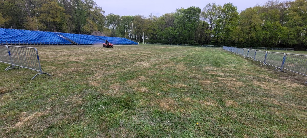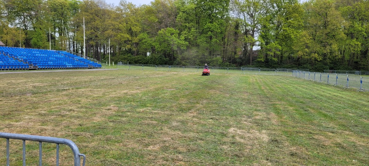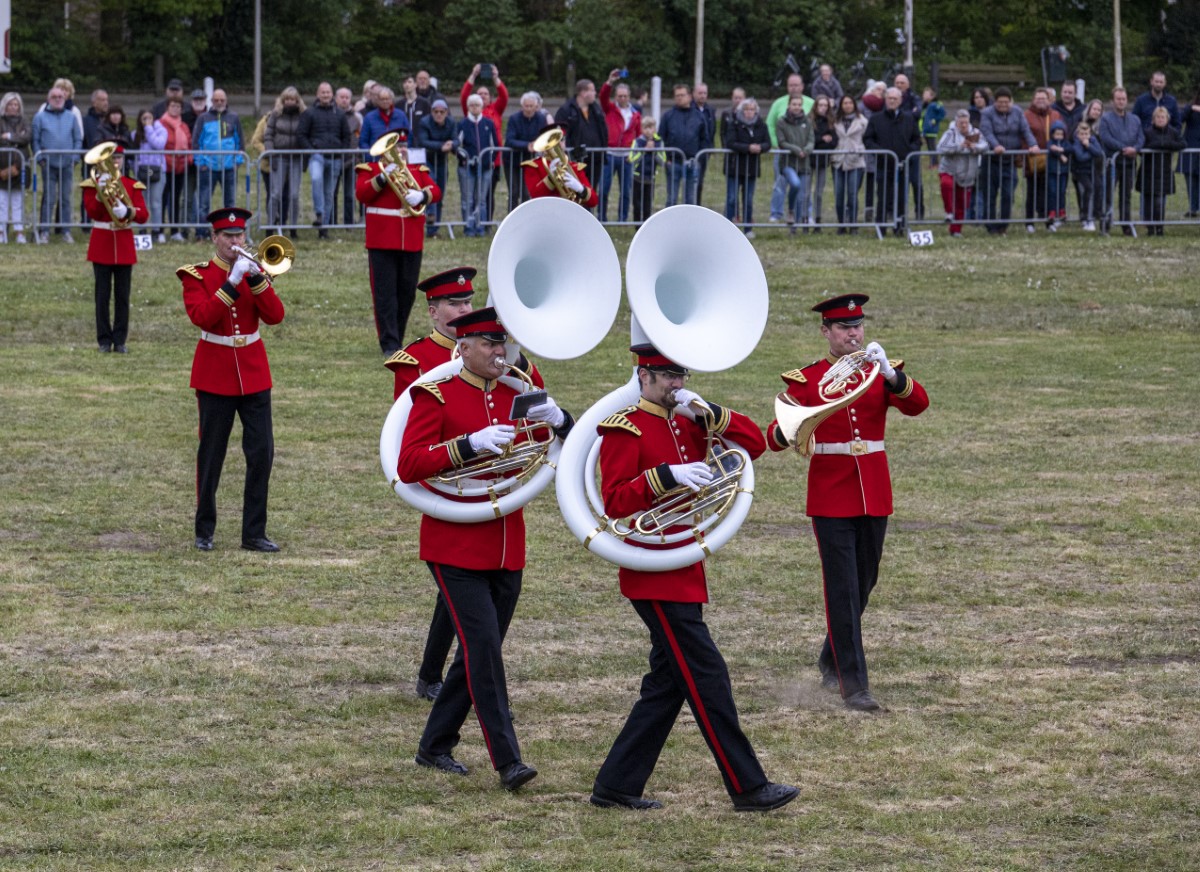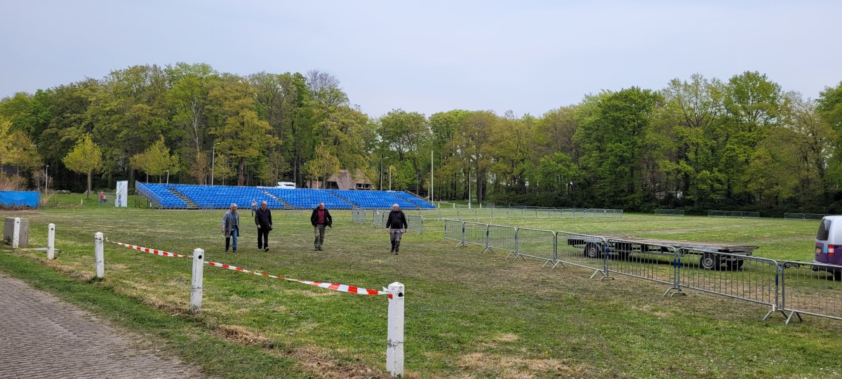 Eerst is er druk gewerkt om een grote arena te maken voor de 7 deelnemende korpsen. Het gras werd nog is extra kort gemaaid in het arena deel en de horeca en toiletten werden geplaatst.