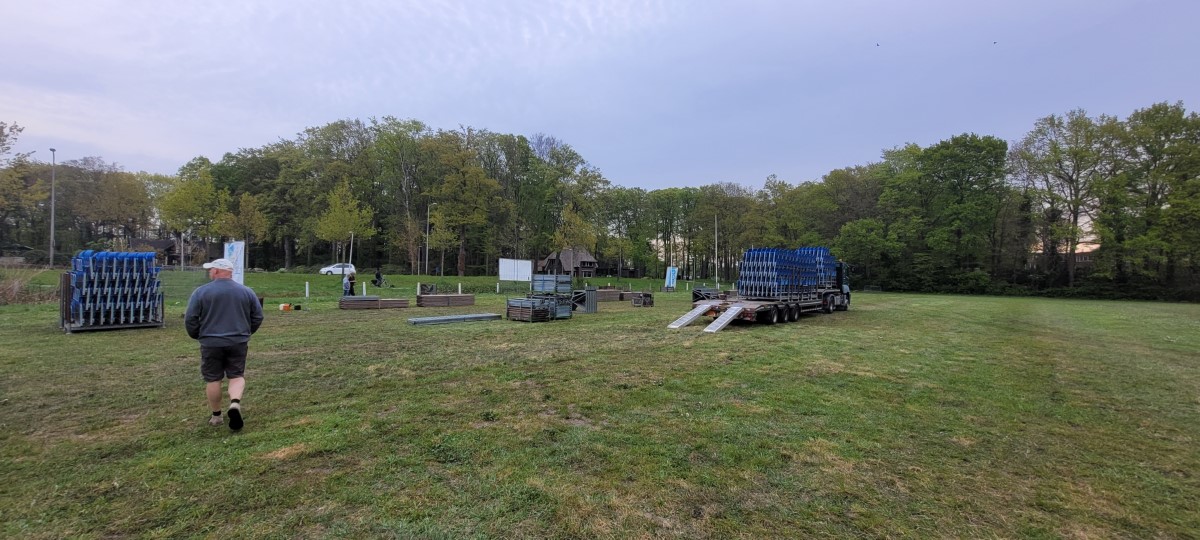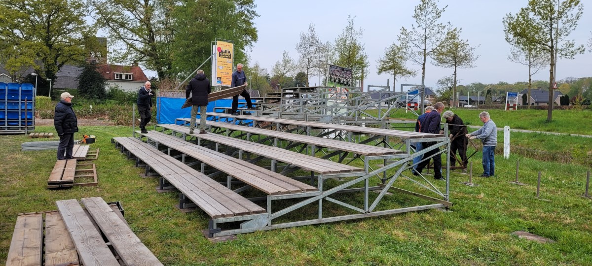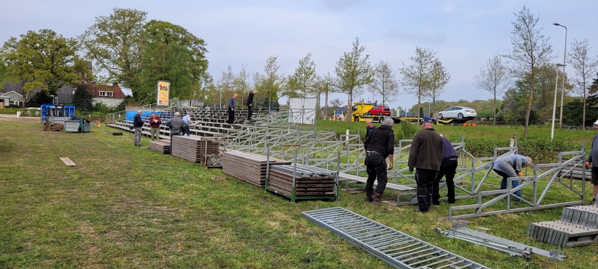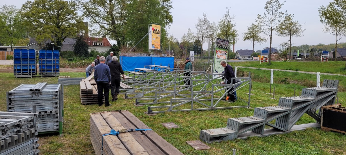 Op vrijdagochtend 29 april 2022 is er begonnen aan de opbouw van de taptoe. Met vele vrijwilligers werd de tribune opgebouwd, daarop is straks plaats voor 900 bezoekers.
