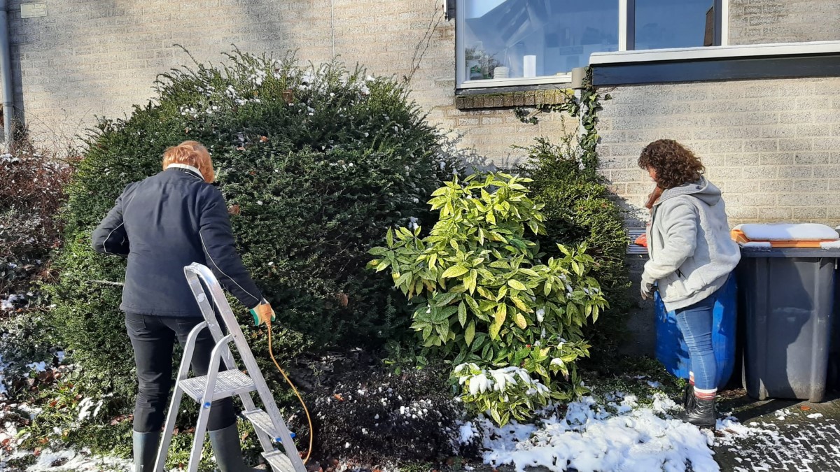 Ondanks dat er nog wat sneeuw lag, hebben we geluk gehad met het weer. Het was heerlijk weer om buiten bezig te zijn. Tevens werden de vrijwilligers weer heerlijk verwend met heerlijk eigen gemaakt gebak bij de koffie en een heerlijke lunch met soep en broodjes.